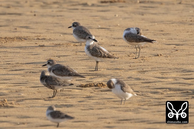 砂浜で休むオオメダイチドリとメダイチドリ。