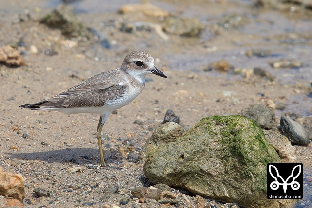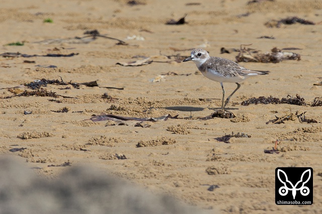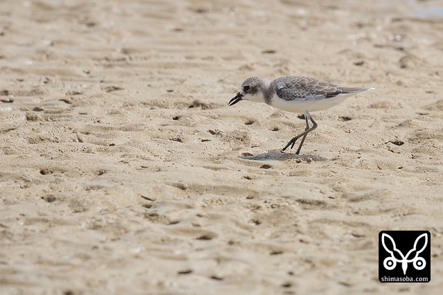 双眼鏡で覗くと、オオメダイチドリが砂浜をちょこまかと走っています。