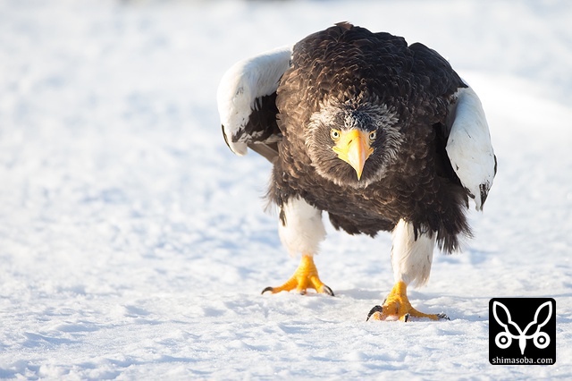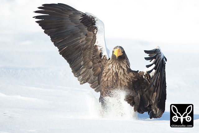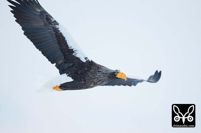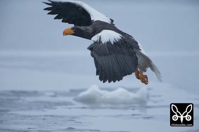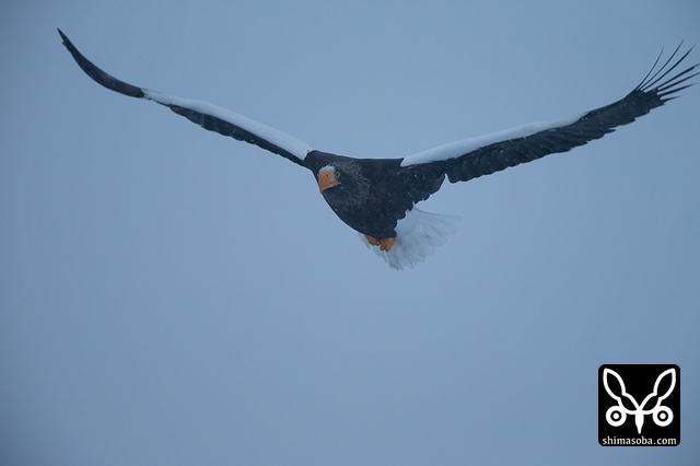 こちらへ飛んでくるオオワシ。全てが巨大です。^^;