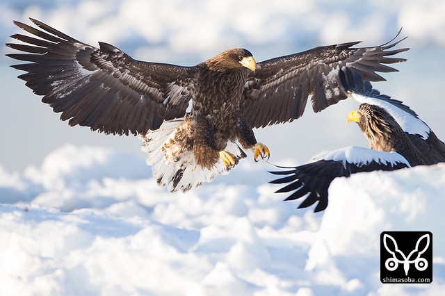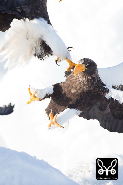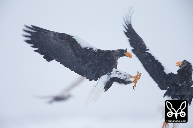 オオワシ同士のバトル。かなり激しいです。