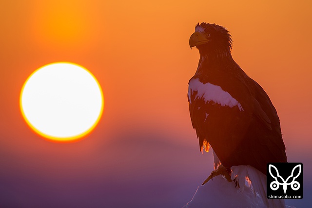 朝日とオオワシ。