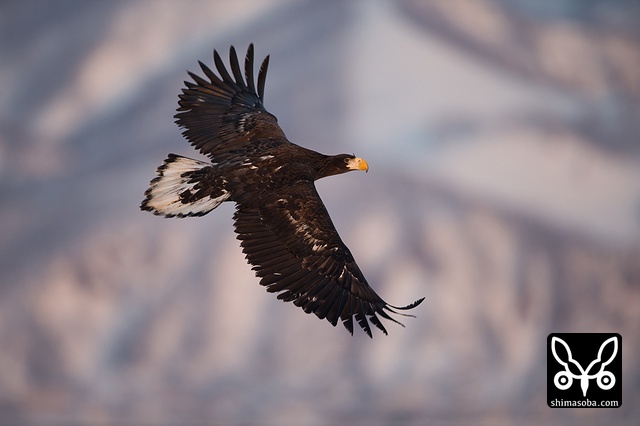 知床連山をバックにオオワシの幼鳥。