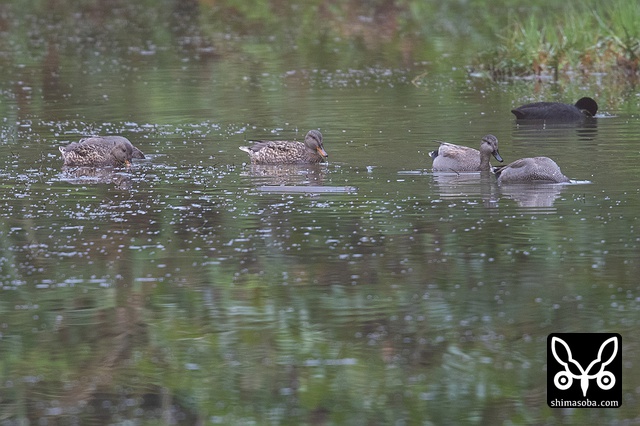 池の奥の方にはオカヨシガモが数羽。