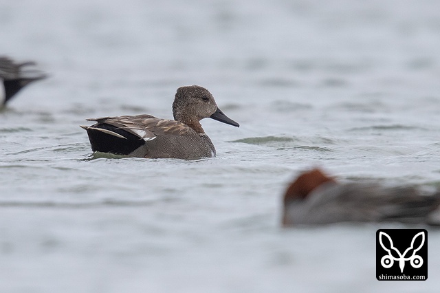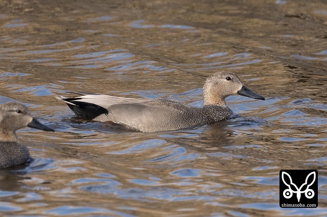 オカヨシガモのメス。上のオスと行動を共にしていたが、こちらはまだ非生殖羽。