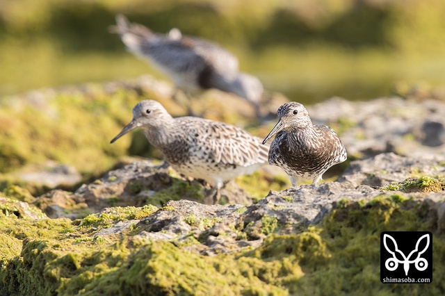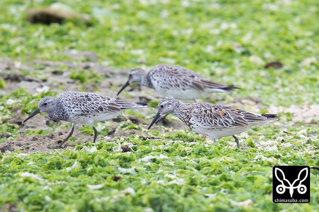 冬羽から夏羽に変わりつつあるオバシギたち。