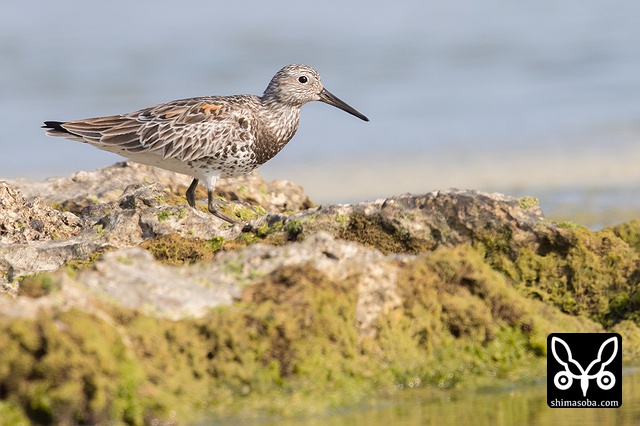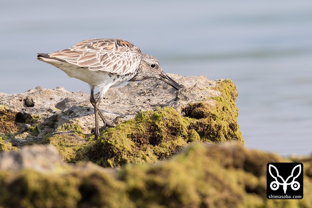オバシギは、嘴を岩の穴に差し込んで餌を探していた。小さな貝を捕まえているようでした。