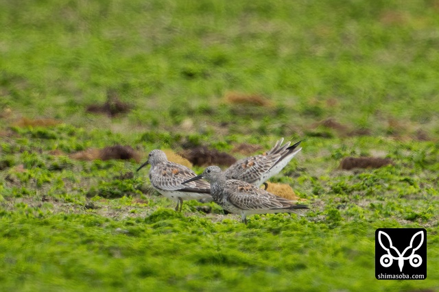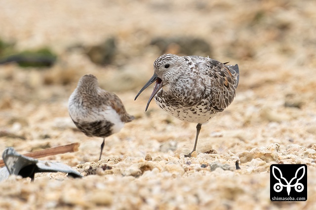 サルハマシギやミユビシギを観察していたら海岸に舞い降りてきたオバシギ3羽。長旅を経ていま到着しましたという感じで疲れ切っていました。