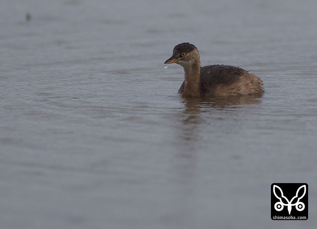 カイツブリ冬羽がコガモと同じ田んぼにいた。