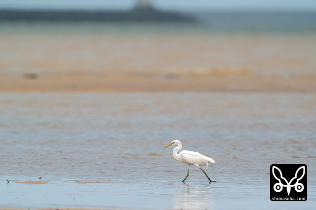 カラシラサギは、潮の引いた海岸を歩き回りながら小魚や甲殻類などを捕まえているようでした。