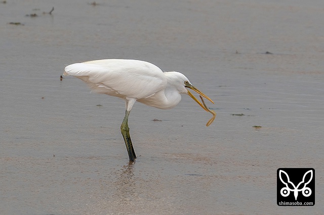 こちらのカラシラサギは小さなハゼの仲間を捕まえました。
