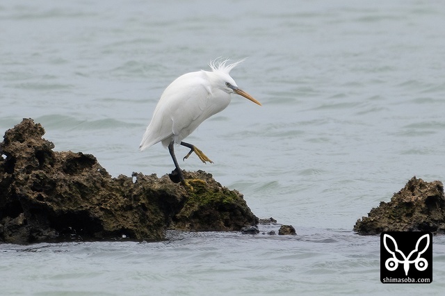 上の2羽とは少し離れた海岸にもカラシラサギ。片方の足を痛めているようでした。