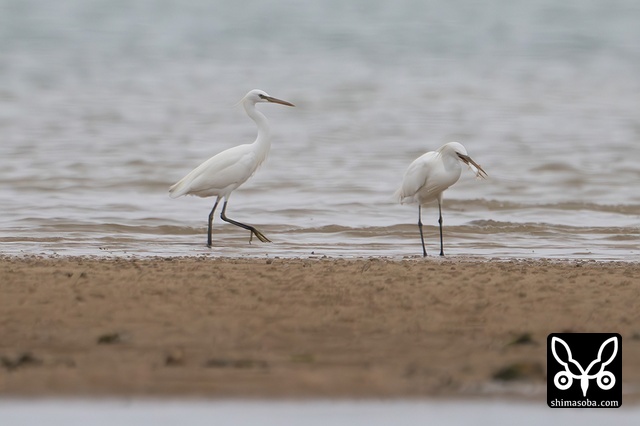 少し距離を置くこともありましたが、基本的には穏やかに過ごしていました。しかし、潮が引いてエサ取りタイムに入ると小競り合いが絶えません…。^^;