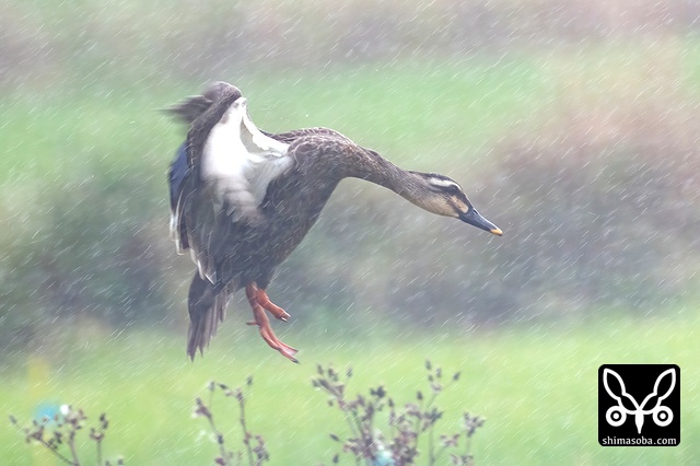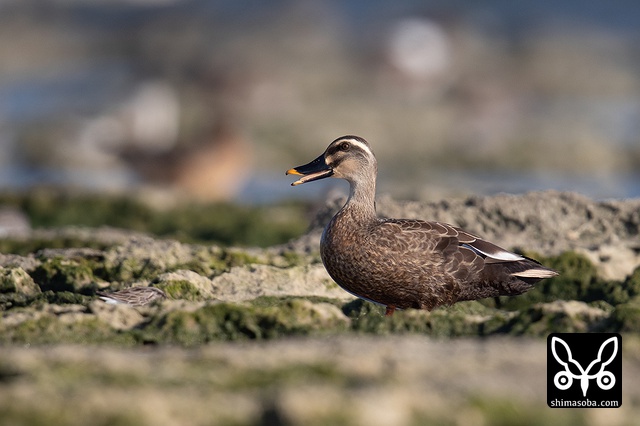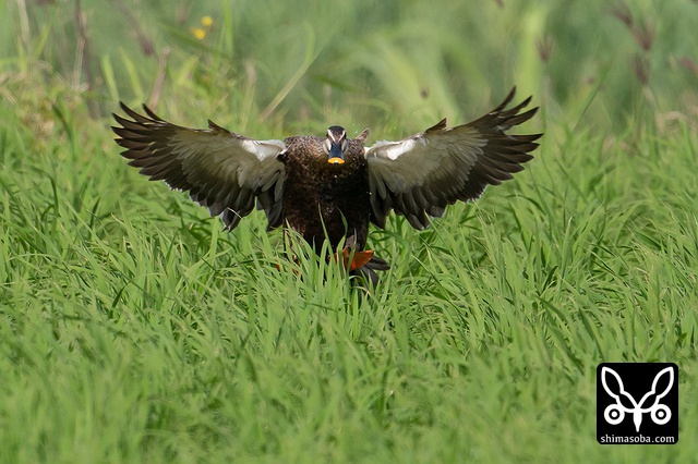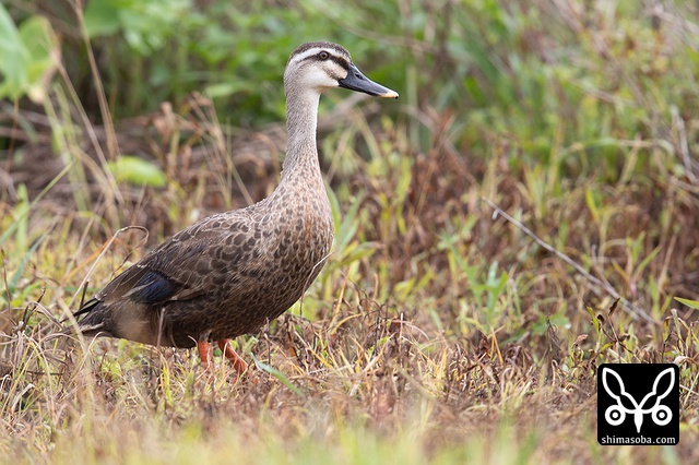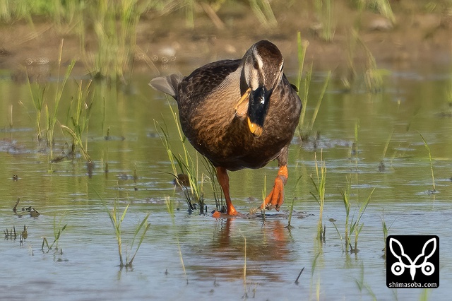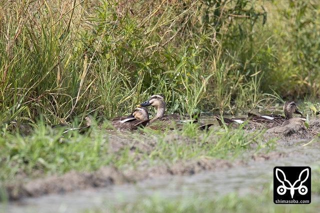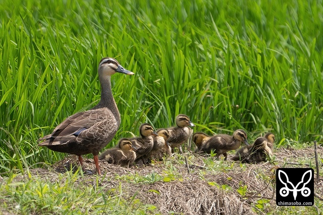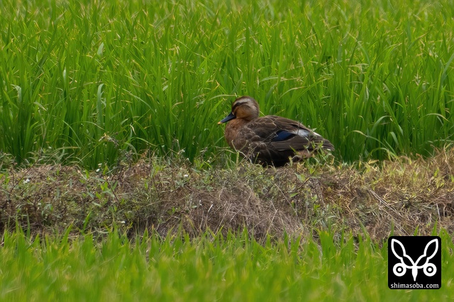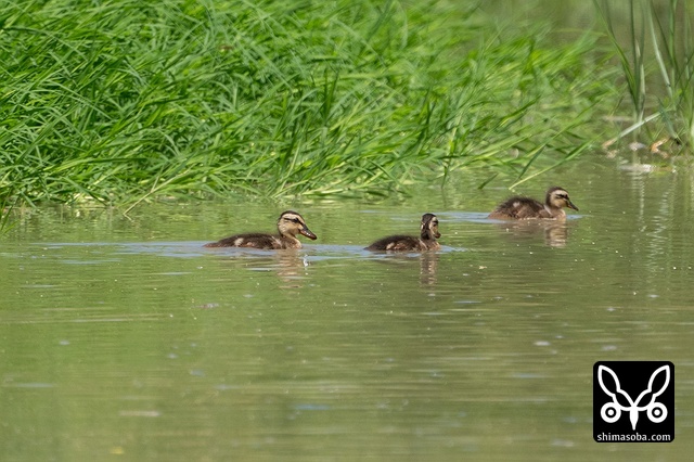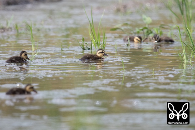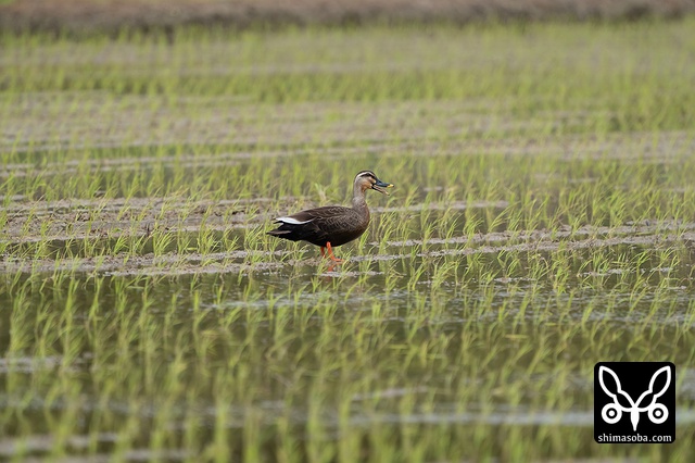 カルガモ以外、北上していなくなったのですが、田んぼにハシビロガモ(左)が1羽だけ残っていました。オスの幼鳥。石垣島で唯一、繁殖するカルガモは2週間ほど前から田んぼや水路で親子連れを観察できるようになりました。