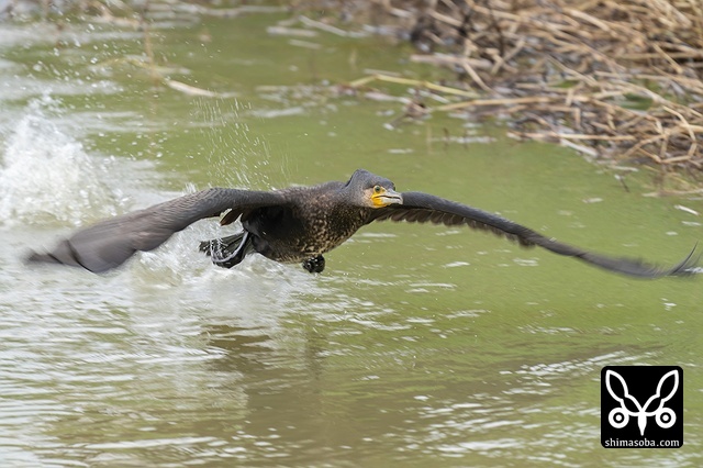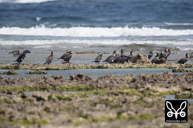 小さな沈砂池にカワウが40羽ほど集結していました。沖縄で稀なウミウを探すも見つからず。