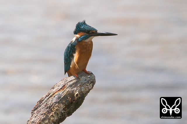 満潮を迎えるとカワセミがやって来て小魚を捕まえていた。