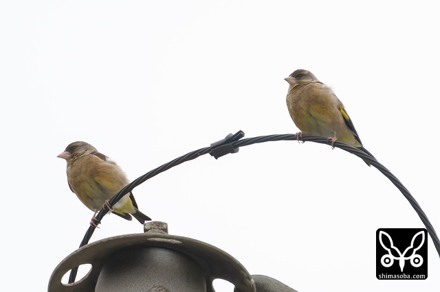 カワラヒワの鳴き声がすると思ったら遠くに2羽。