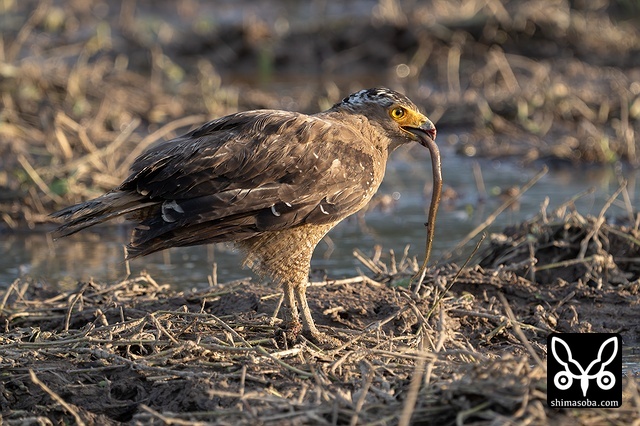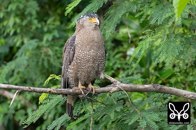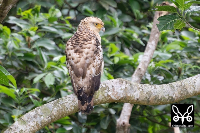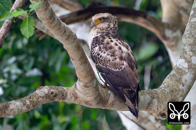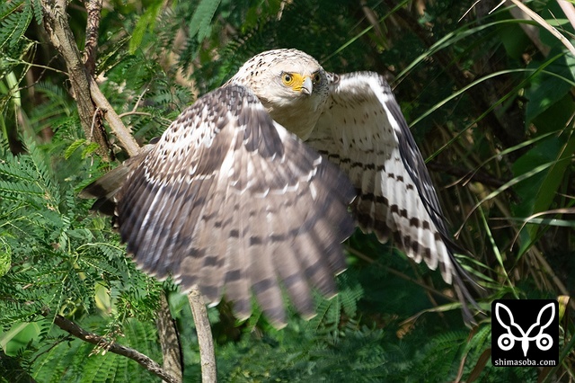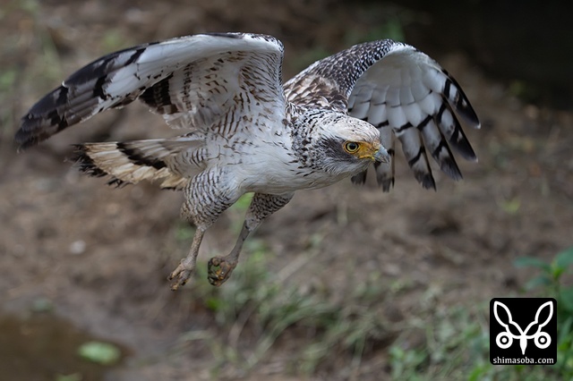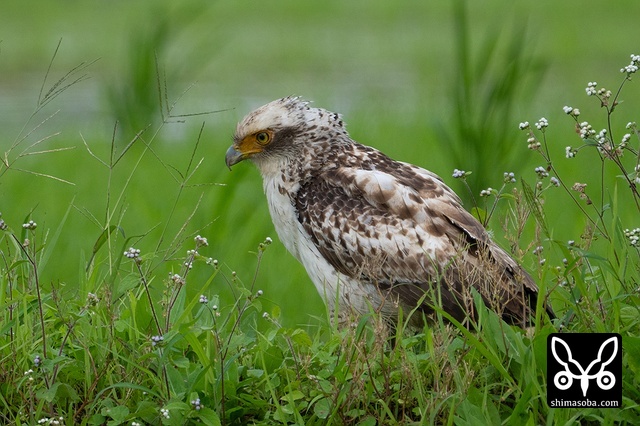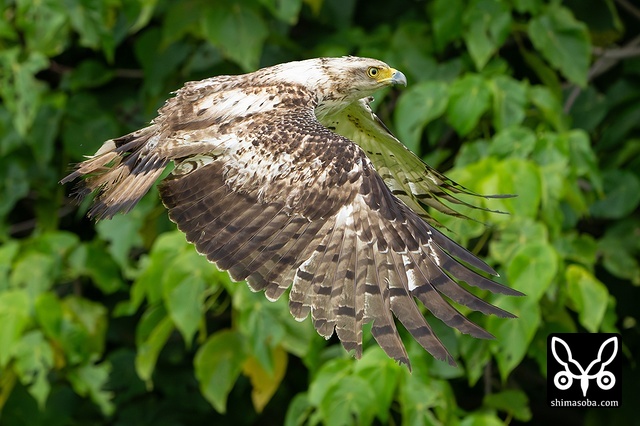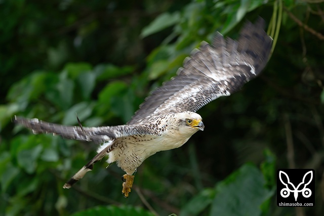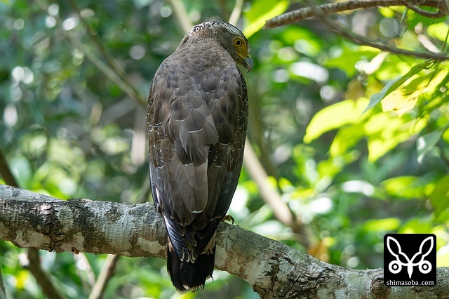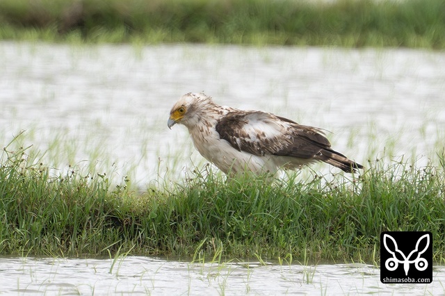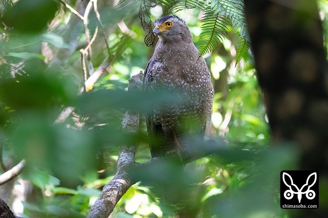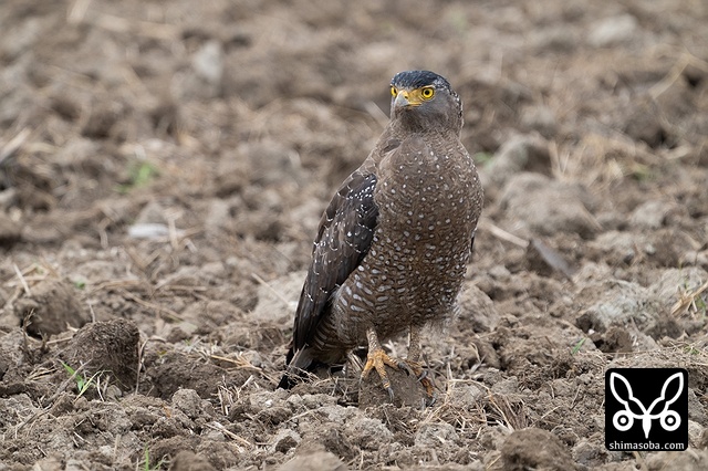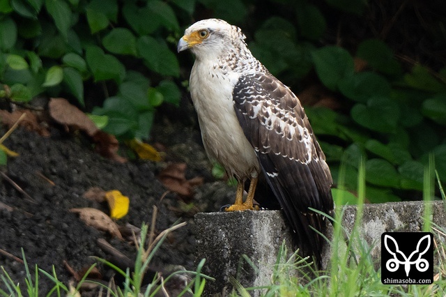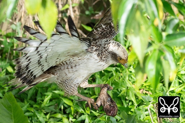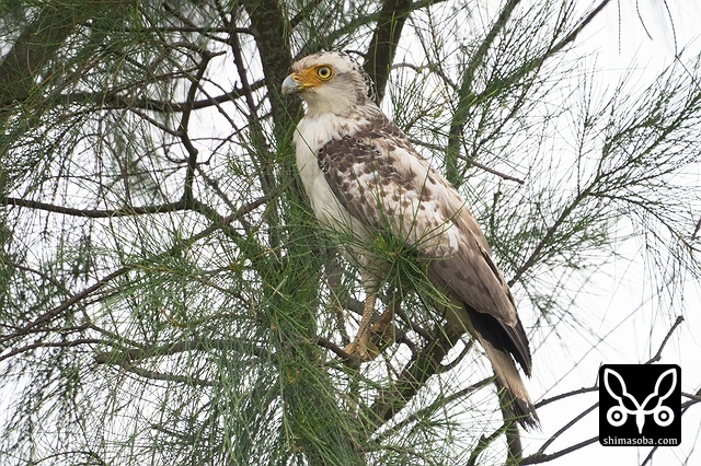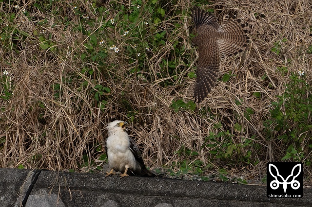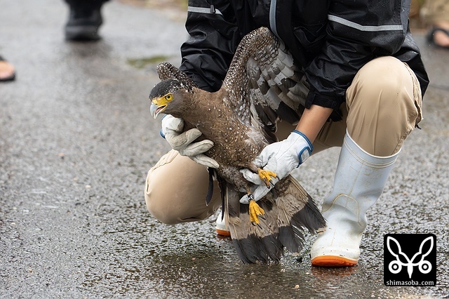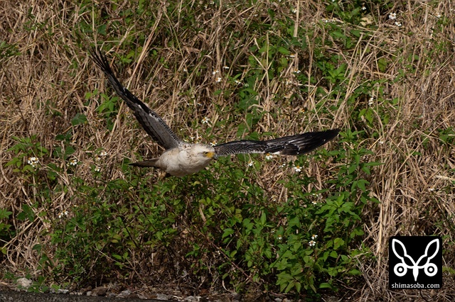 強風の中、カンムリワシのメスが獲物を探していました。左足に「7」と書かれた黒い足環をしているので、過去に救護されたことのある「みっちゃん」ですね。今年の4月初旬に放鳥された個体で `4月 <https://shimasoba.com/blog/2347/>`_ と `5月 <https://shimasoba.com/blog/2364/>`_ にも同じエリアで確認しています。