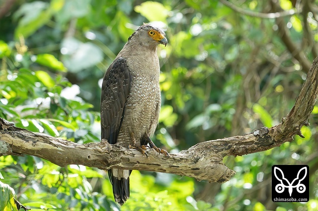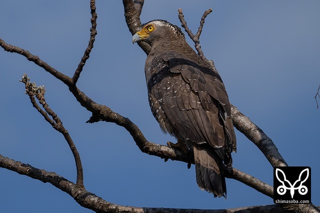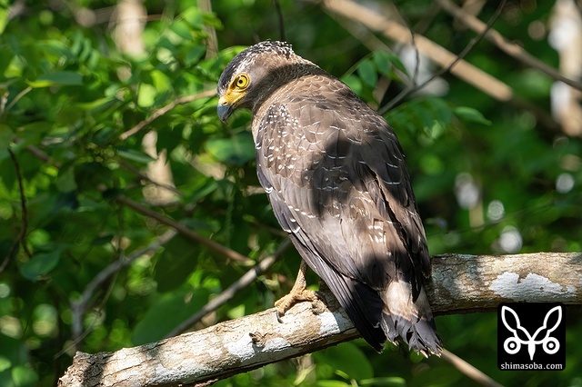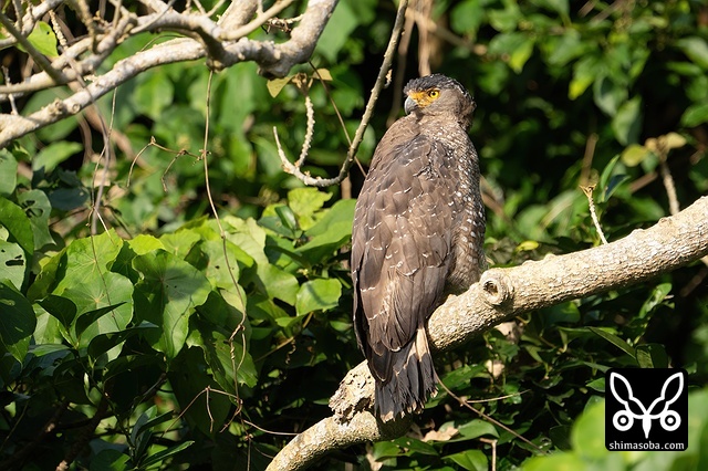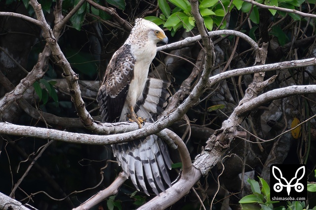 繁殖期序盤でカンムリワシが活発です。枝から獲物を狙う個体。
