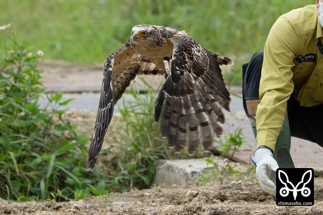 小学校の校庭でカンムリワシ。子育ても終わり、カンムリワシに出会う機会が多くなってきました。