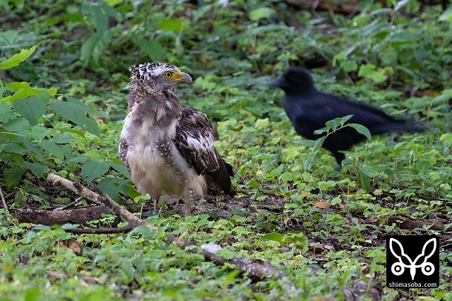 カンムリワシ幼鳥。カラス数羽に囲まれていました。