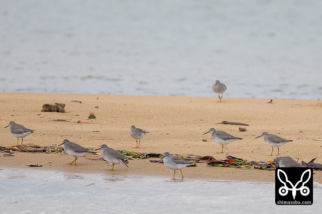 キアシシギとキョウジョシギが飛行機の音に驚いて飛びました。
