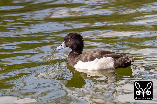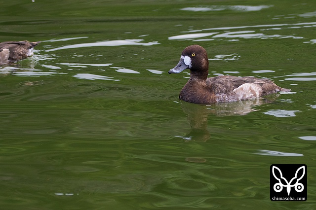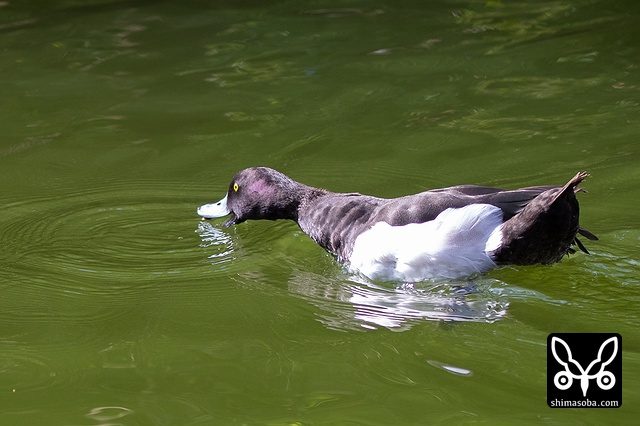 来場者の投げ入れた鯉の餌を食うキンクロハジロ。