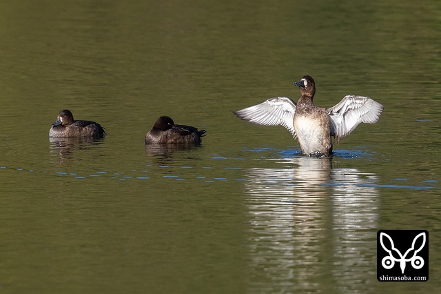 キンクロハジロが沈砂池に3羽。ダムには200羽ぐらいいますが…。^^;