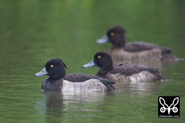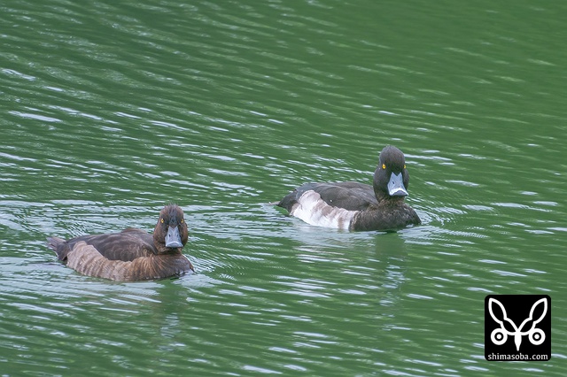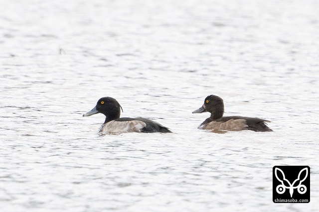 キンクロハジロのオス(左)とキンクロハジロのメス。