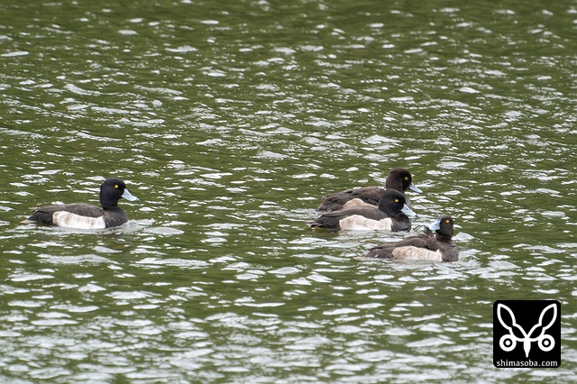 沈砂池にキンクロハジロ4羽。全てオス個体。