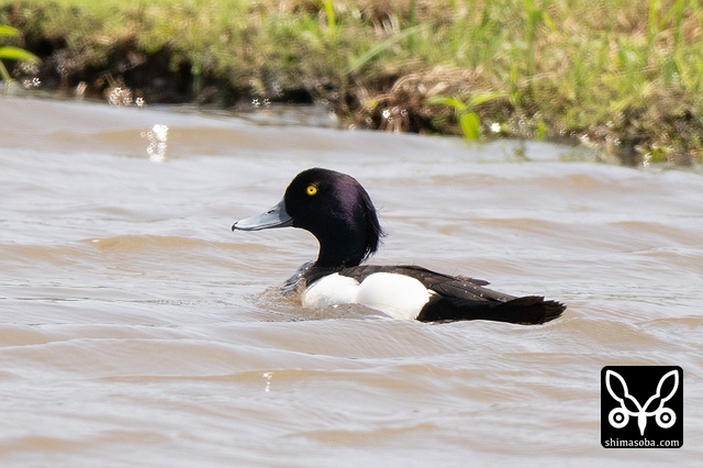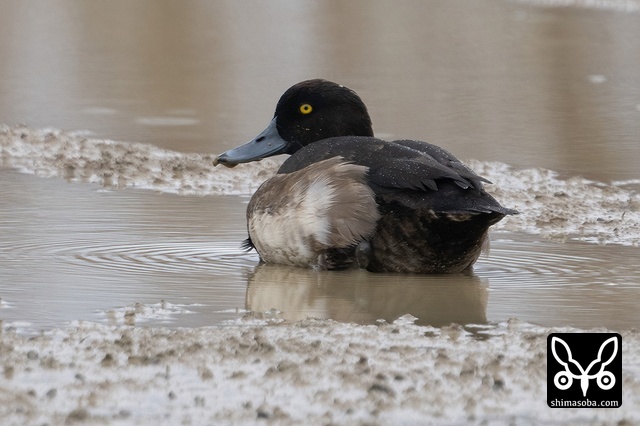 沈砂池にいた若いキンクロハジロ。ほかの個体は北上してすでにいないのに、ずいぶんのんびりした個体です。