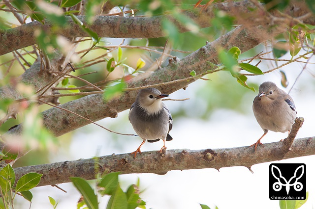 ギンムクドリは牛舎でカラムクドリやインドハッカと越冬している個体。インドハッカは繁殖行動をしていた。