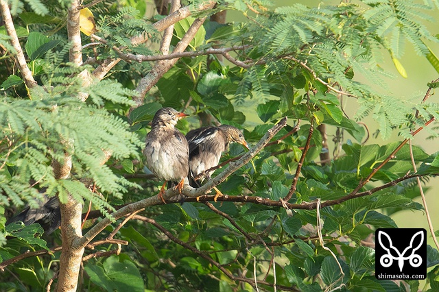 ギンムクドリ。上がオスで下の2羽がメスです。
