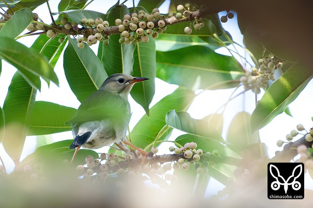 こちらはテリハボクの葉の隙間にくちばしを差し込んでいました。虫でも探しているのでしょうか。