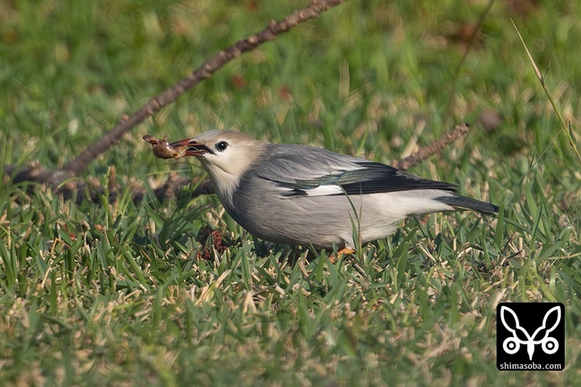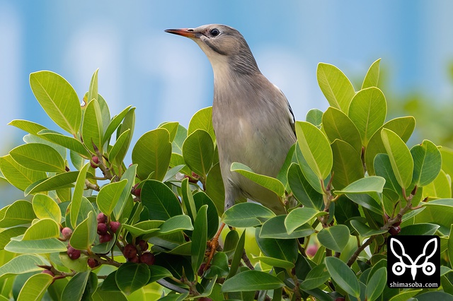 ギンムクドリ成鳥オス。今年の群れは小さめなのが多いです。