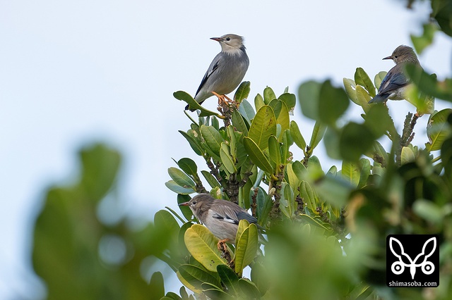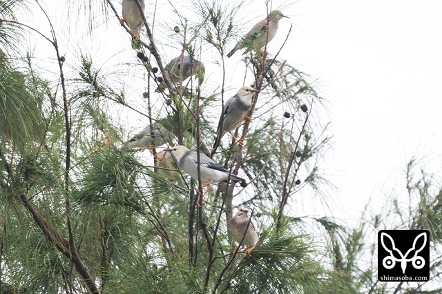 年末ごろは大きなギンムクドリの群れをよく見たのですが、最近は数羽の群れが多いです。島内で分散したのかな?