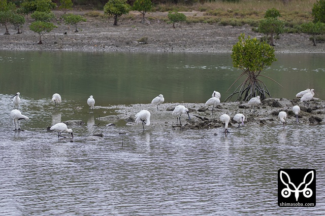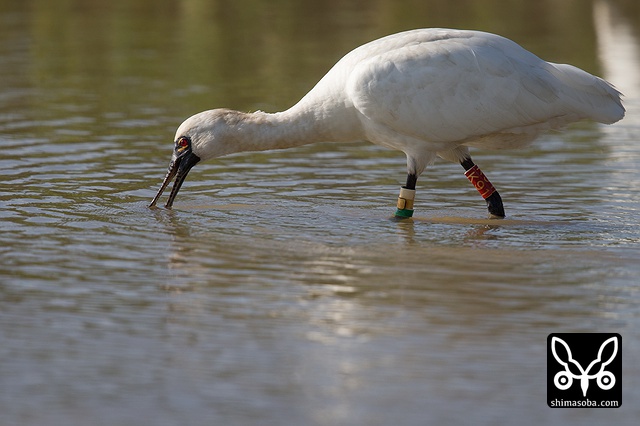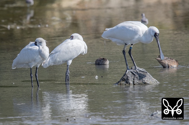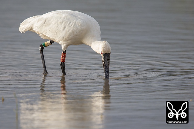 J15の足環をつけたクロツラヘラサギ。こちらは、 `昨年11月8日に三角池で初確認 <https://shimasoba.com/blog/946/>`_ しており、沖縄タイムスの知り合いのカメラマンに連絡し、同紙にも掲載されました。2007年以降、10年連続の飛来です。