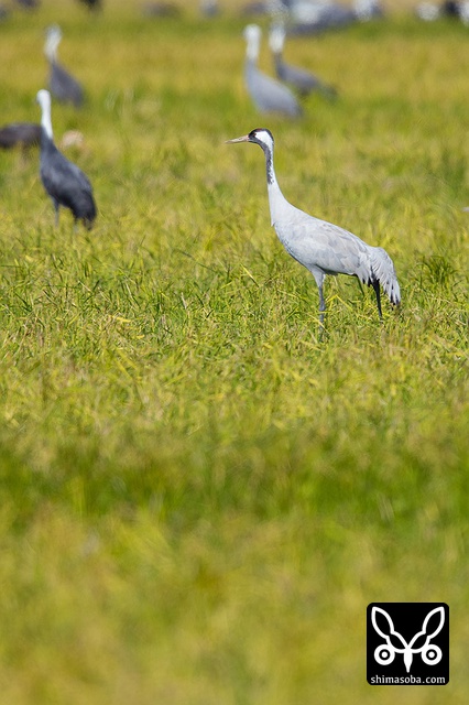 越冬中のクロヅル。最近は毎日のように採餌場所を転々と移動しています。