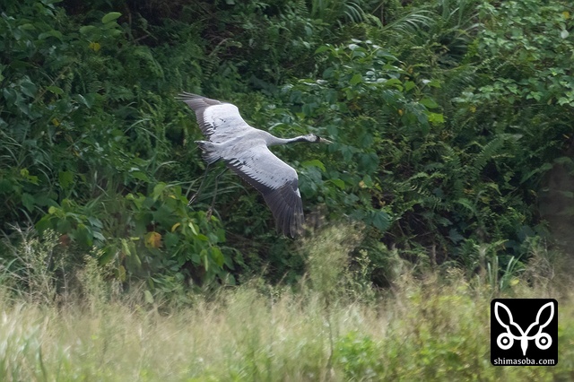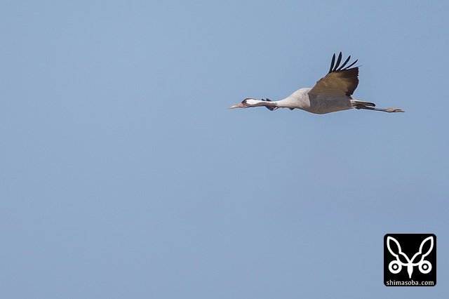 飛ぶクロヅル。換羽の状態から年齢が読み取れるかと思ったのですが…よく分かりません…。^^