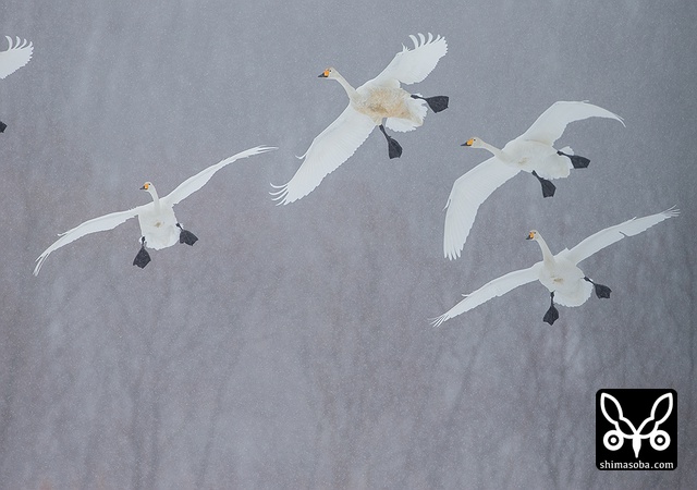コハクチョウは田んぼを転々としながら3カ月の滞在。