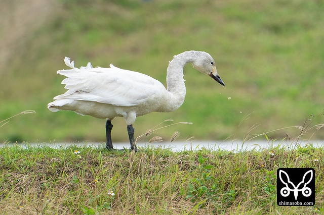 コハクチョウも滞在中。警戒心が弱く、散歩の人が通っても逃げません。