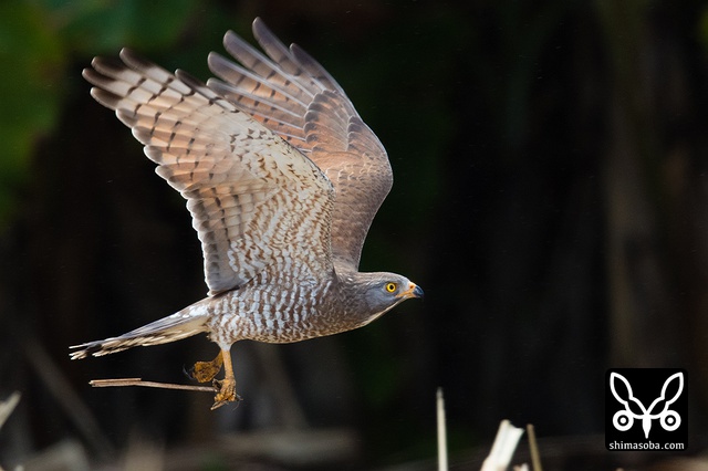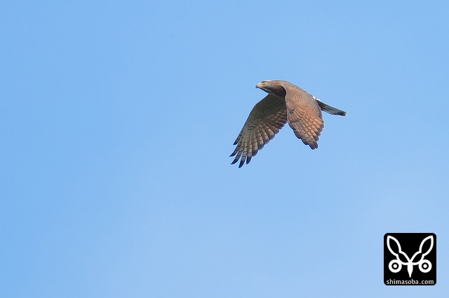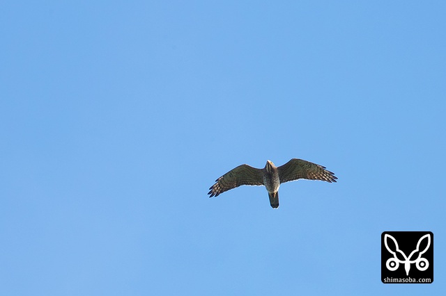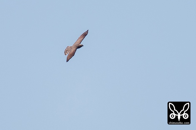 サシバの飛翔。元々の横の画素5472ピクセルを1192ピクセルになるまで超トリミングしてもこの解像感。手持ち撮影ですが、手ぶれ補正もよく効いています。^^ ちょっとノイジーなのはAPS-Cだから仕方がない。