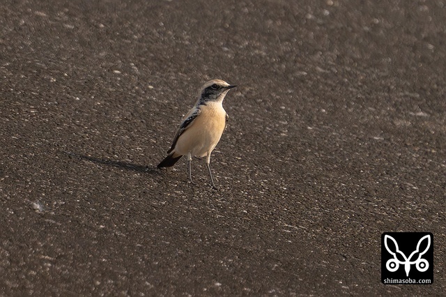 サバクヒタキはオスの第1回冬羽と思われます。ツグミと小競り合いをして、屋根のてっぺんに止まるとどこかへ姿を消しました。