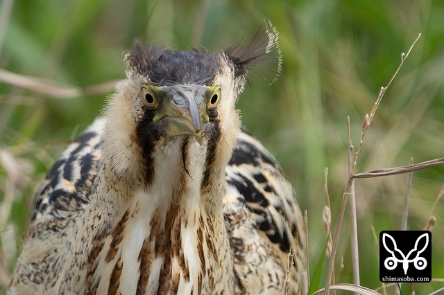 こちらを警戒するサンカノゴイ。