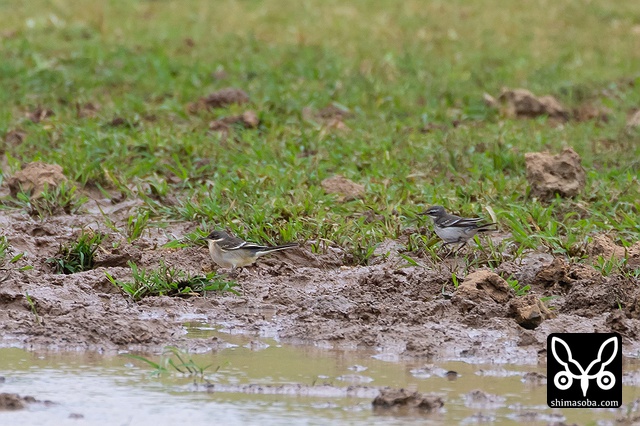 与那国空港近くで撮影。キタツメナガセキレイかシベリアツメナガセキレイの幼鳥と思われる個体(左)。右はツメナガセキレイ幼鳥。