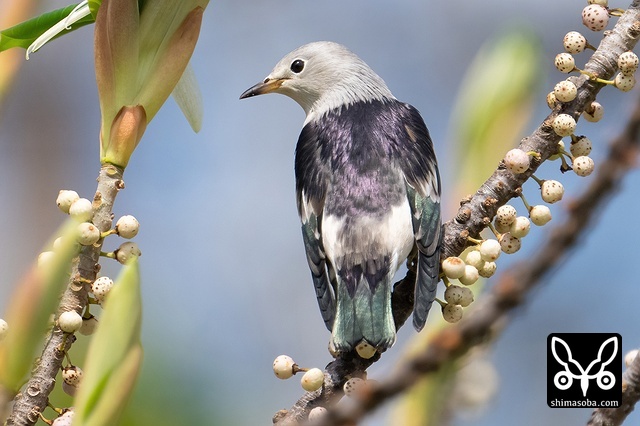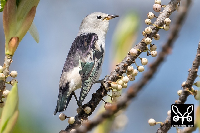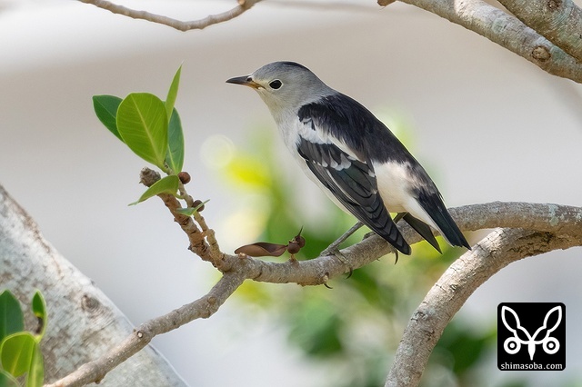 オオバアコウにとまるシベリアムクドリ。