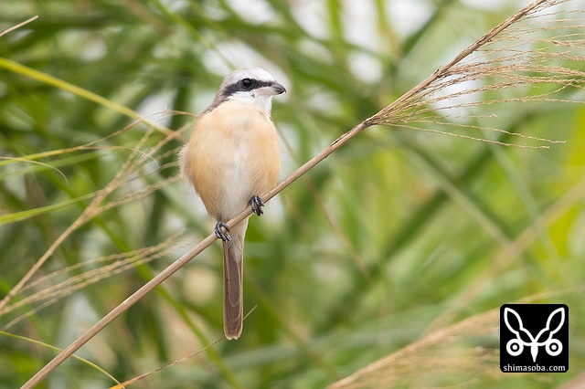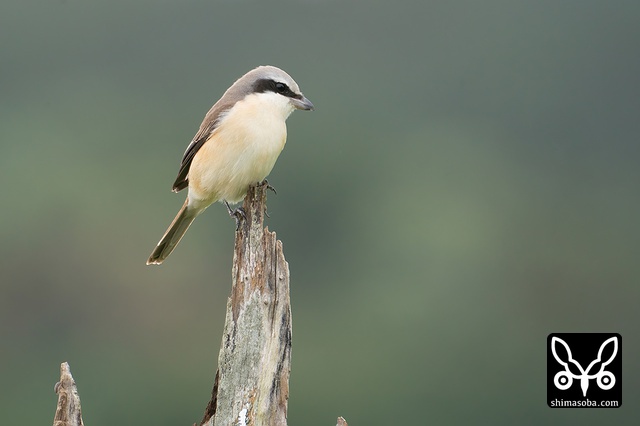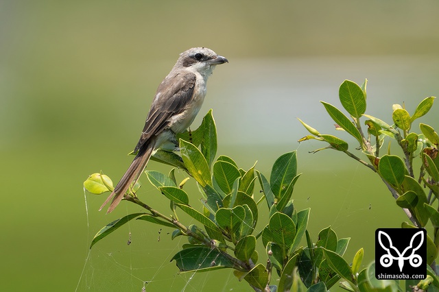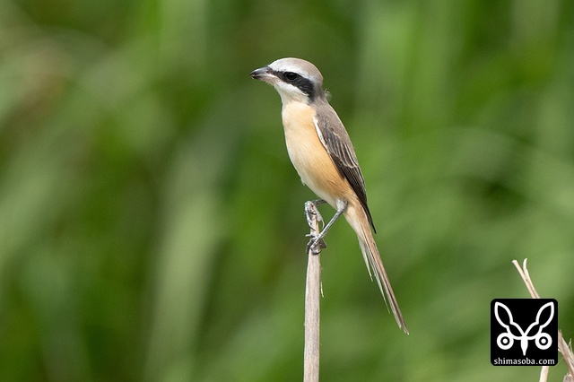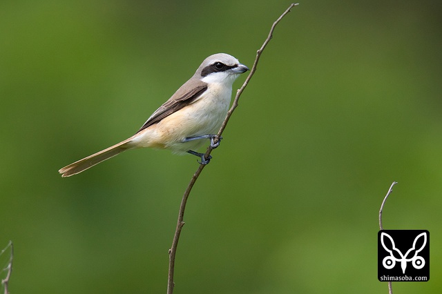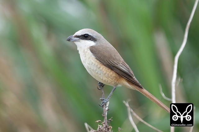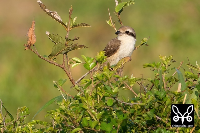 シマアカモズの成鳥オス。渡りの序盤はオスの成鳥が多いですね。