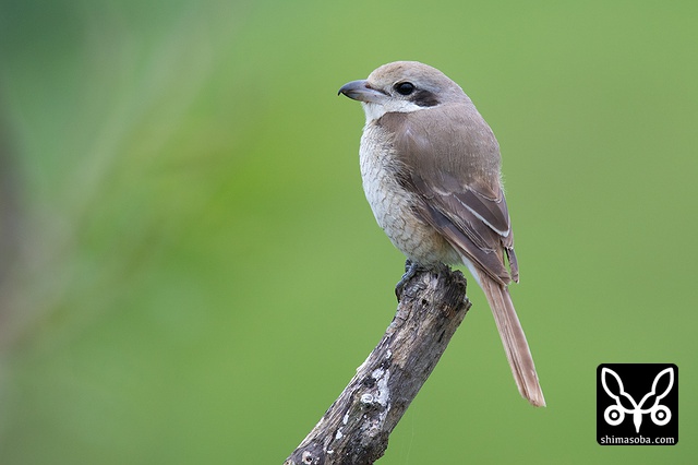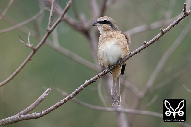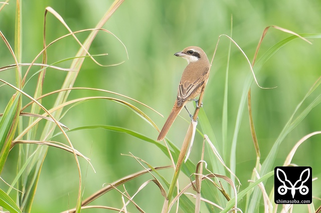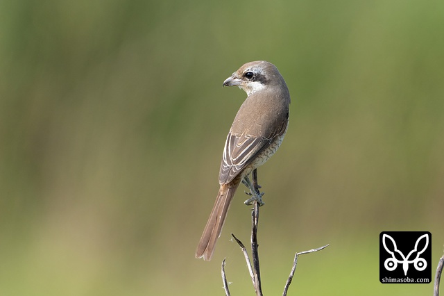 シマアカモズ第1回冬羽。尾羽の最外部がほかよりも短いのが気になりますね。