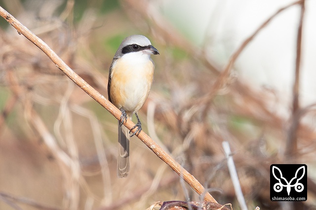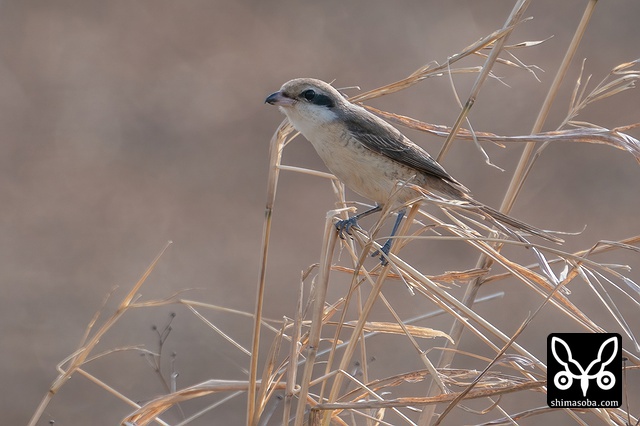 シマアカモズのオス第1回冬羽。シマアカモズは成鳥から幼鳥までバリエーションに富んだ個体が越冬しています。