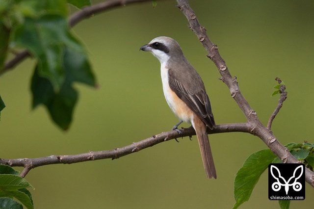 シマアカモズのオス。頬の下あたりや脇にわずかながら鱗模様が見えるので第1回夏羽でしょうか。