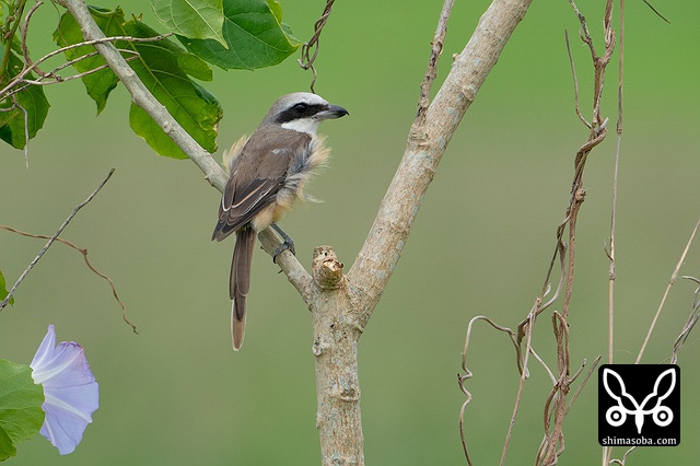 シマアカモズの成鳥オス。換羽が進んでぼろぼろですね。